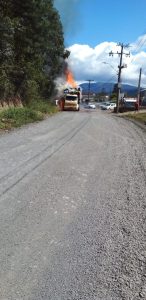 O incêndio aconteceu no centro de Rio Rufino às 13h40 deste sábado, 18. O caminhão Volkswagen Modelo 16-170, estava carregado com vime e palha decorativa. Ao sair do barracão, após o carregamento da carga, que teria destino para o Fortaleza enroscou na fiação de alta tensão. O fogo iniciou instantaneamente. O motorista conseguiu desviar a rota, mesmo com o caminhão em chamas, e abandonar o veículo na lateral na rodovia que liga Rio Rufino à Urubici. O acidente ocorreu próximo ao banco Sicoob. O ajudante conseguiu sair antes do fogo atingir a cabine. O motorista também não se feriu. O Corpo de Bombeiros atendeu a ocorrência. Foram gastos 500 litros de água. O combate inicial às chamas foi realizado por populares.