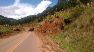 A Polícia Militar Rodoviária interditou parcialmente, na tarde deste sábado, 04/03, o Km 401,3 na SC 110, que liga São Joaquim a Urubici. Devido as fortes chuvas que ocorreram nesta manhã e nos últimos dias, foram determinantes para a queda.  A Secretaria de Infraestrutura já está a caminho do local para a retirada da terra. A PMRv já sinalizou. Ainda não há previsão para liberação total. O trânsito segue em meia pista.  Ocorreu também na região queda de energia elétrica, neste momento, 17h10, 2.326 residências em São Joaquim e Urubici foram afetadas.